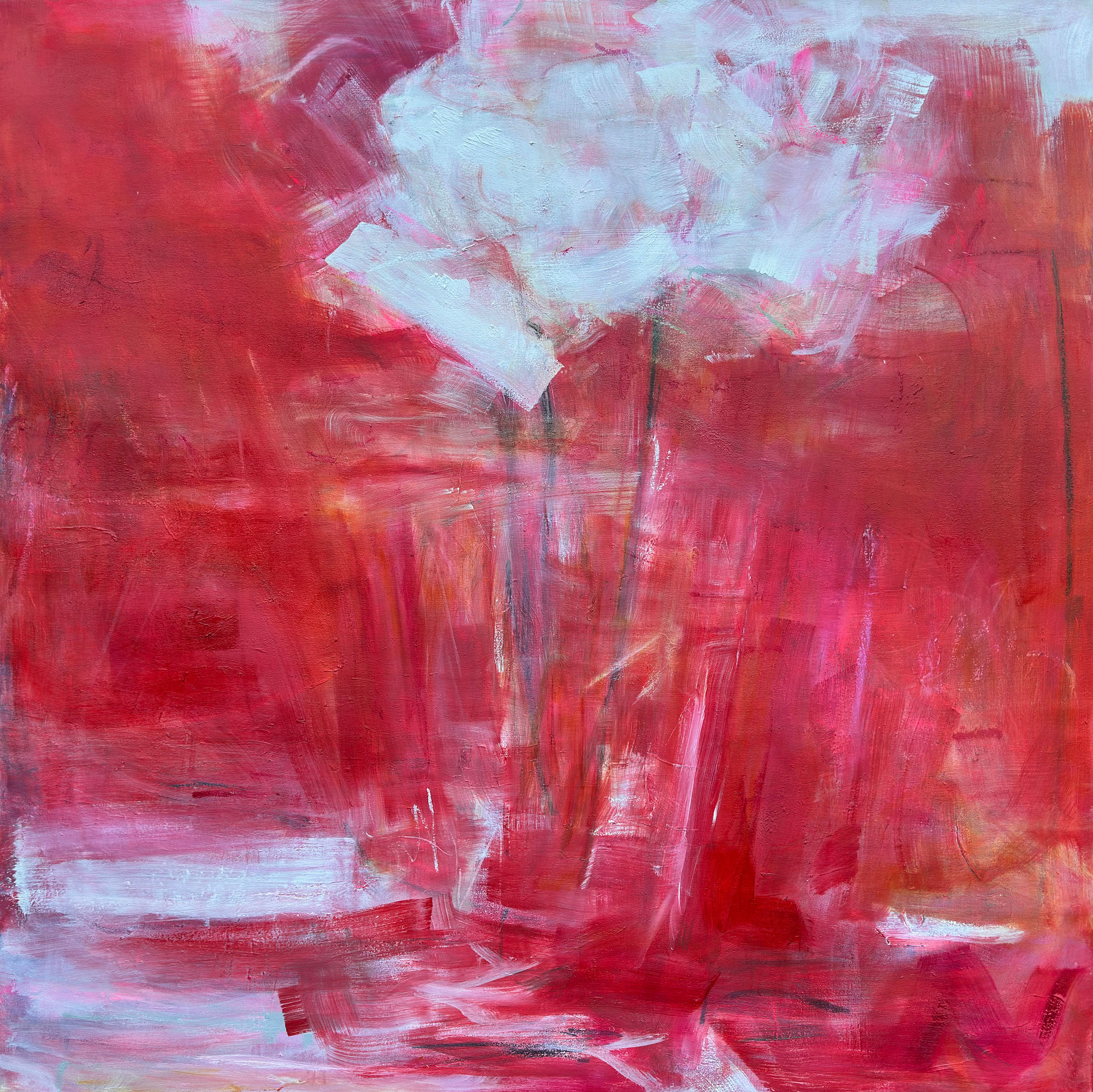 The paintings are not about fixing or resolving trauma, but about staying. About being held, suspended, witnessed, or quietly tethered to life when letting go might have been easier. Gestural marks, fields of color, and moments of light suggest what remains when certainty falls away — a body still breathing, a self still here.